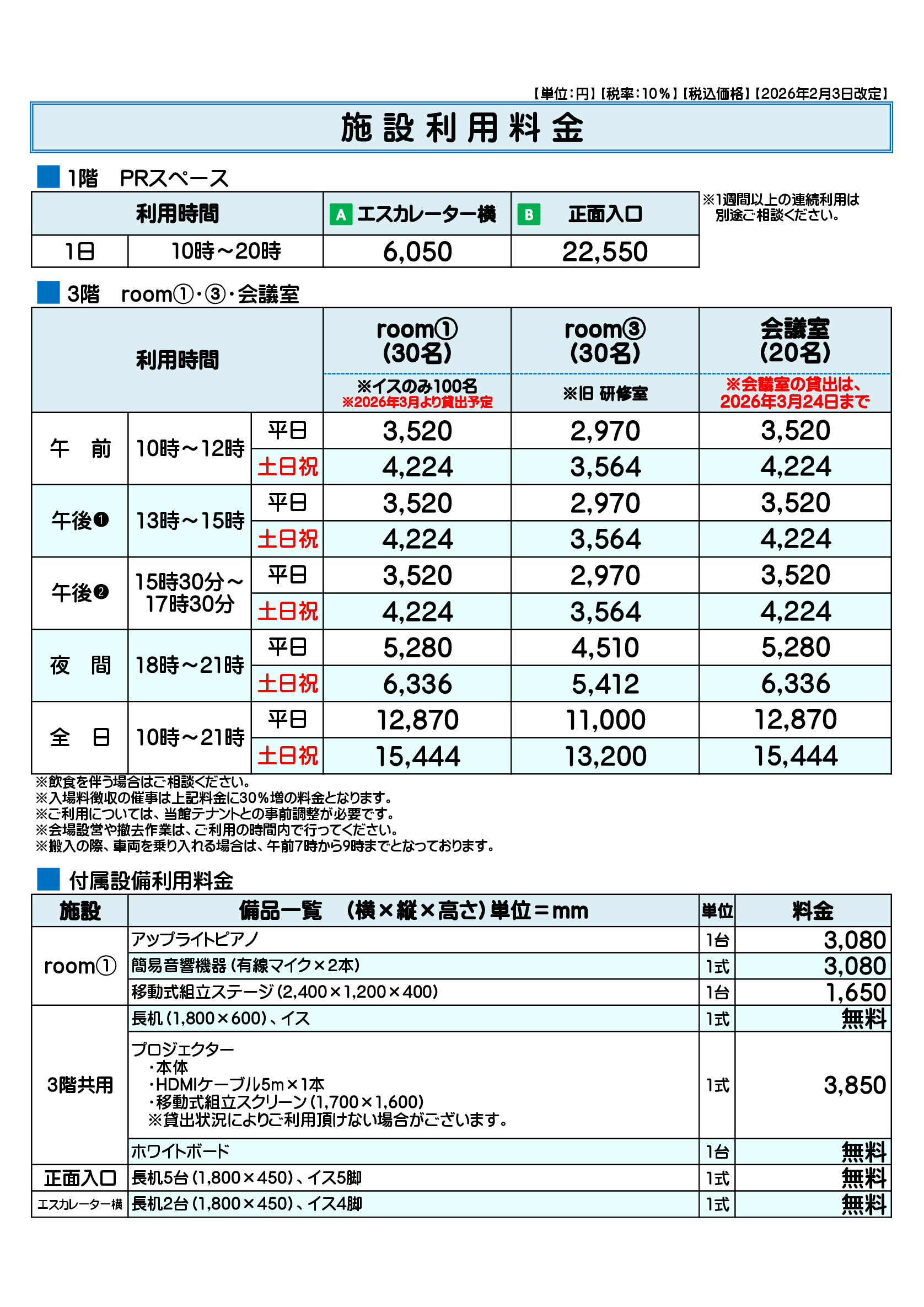 ※当館テナントや大型催事等の利用は優先的に受付しておりますので予めご了承ください。