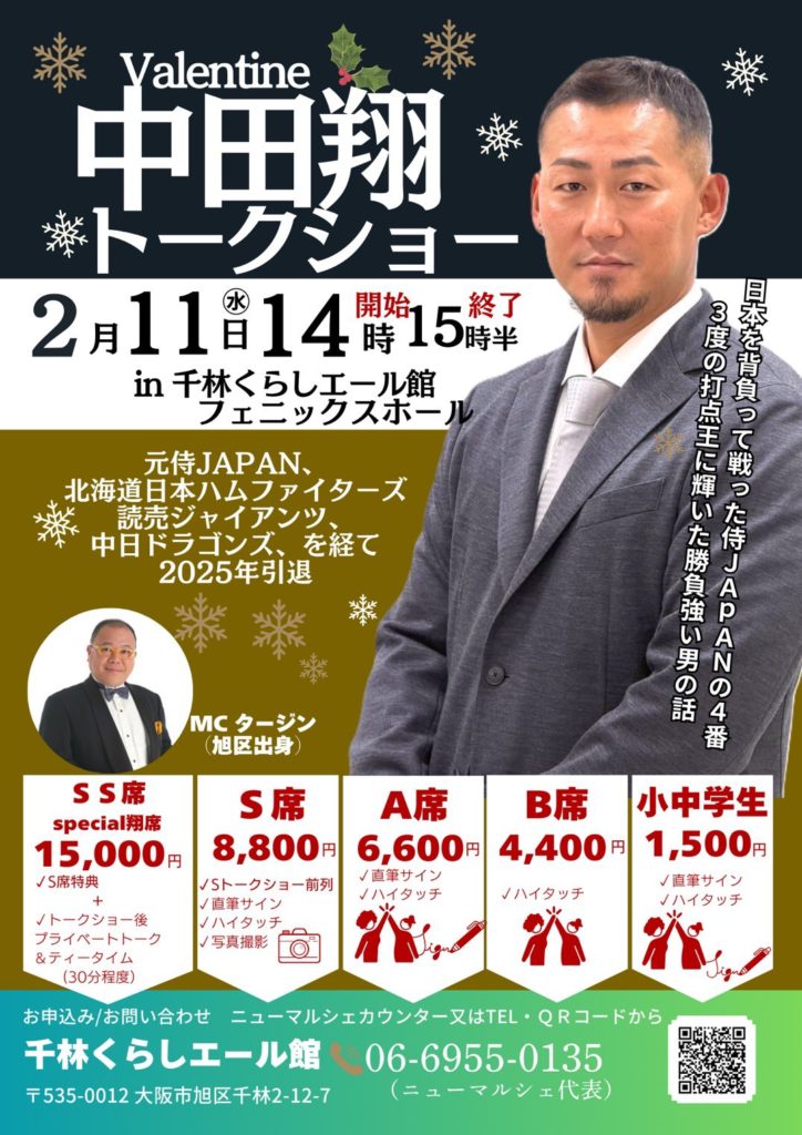 2月11日開催!【中田翔バレンタイントークショー】 2月11日(水) 当館3階フェニックスホールにて 中田翔さんバレンタイントークショー が開催されます! 下記サイトからお申込みください。 →→中田翔バレンタイントークショー ※当館1階スーパーニューマルシェ(サービスカウンター)でもお申込みいただけます。